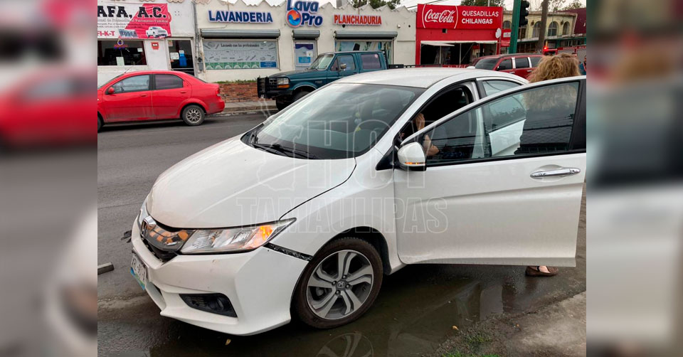 La mujer del Honda Civic circulaba de poniente a oriente por Maclovio Herrera y en el cruce con avenida Morelos, no respetó la luz roja del semáforo y chocó al Taxi.