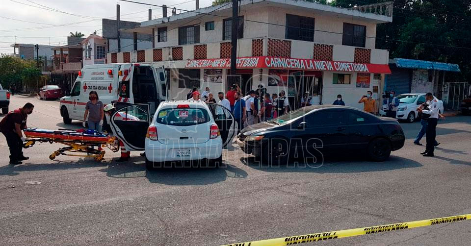 Ciudad Madero, Tamaulipas. - Un taxista resultó con lesiones cervicales al ser impactado en su unidad por un vehículo particular, por lo que fue trasladado a un hospital en Ciudad Madero.