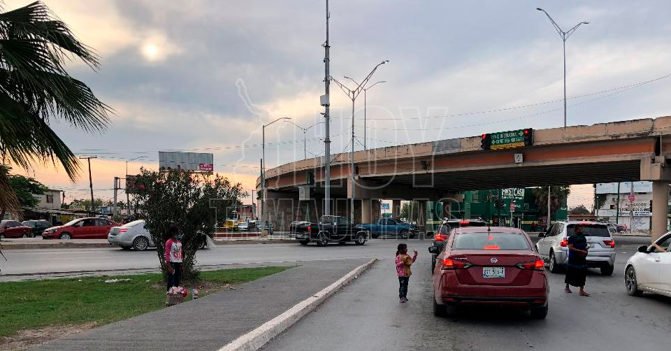 Matamoros, Tamaulipas. - En las últimas semanas se ha observado en los principales cruceros de esta ciudad, la presencia de menores de edad pidiendo dinero o haciendo malabares para ganarse una moneda.
