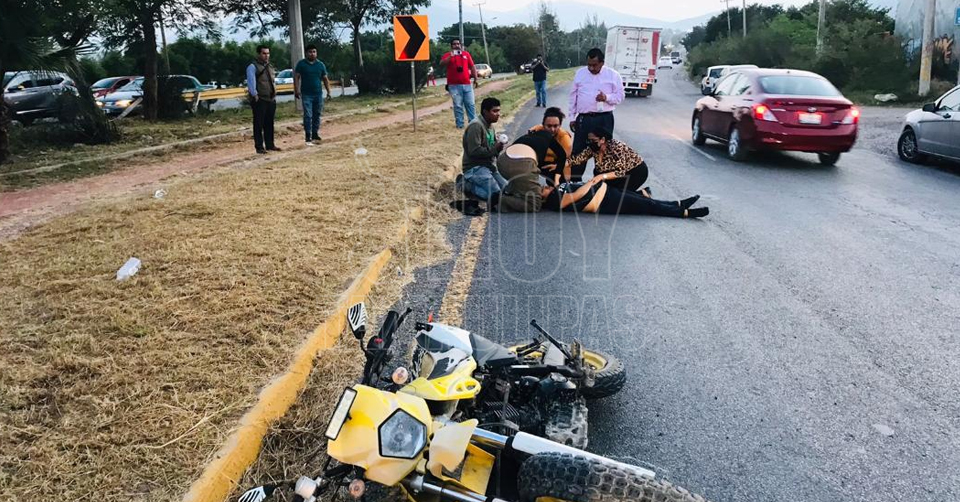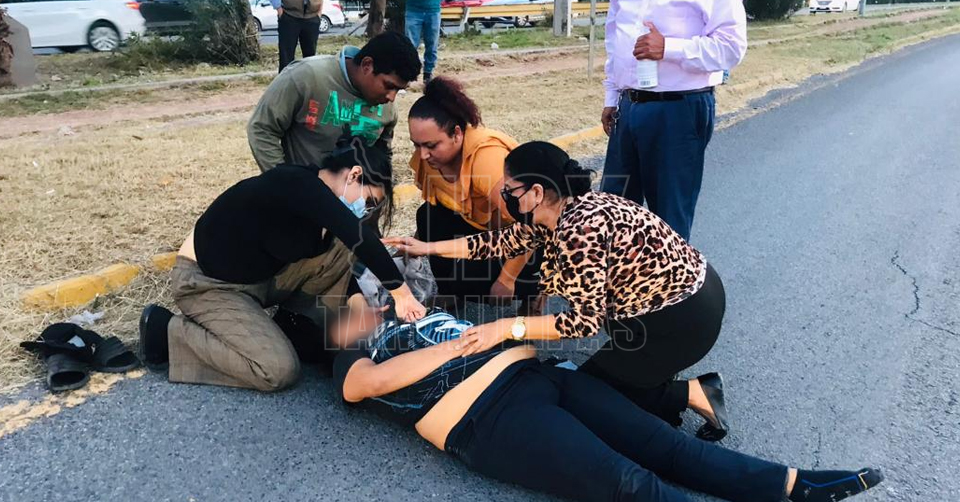 Ciudad Victoria, Tamaulipas. – Una joven embarazada fue trasladada inconsciente al Hospital General esta tarde, luego de derrapar la moto en la que viajaba con su pareja debido a una falla mecánica, en el Libramiento Naciones Unidas frente a los campos del Ipsset.