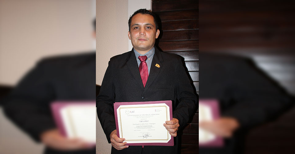 Ciudad Victoria, Tamaulipas. - La Universidad Autónoma de Tamaulipas (UAT) entregó al Dr. Edgardo Jonathan Suárez Domínguez el Premio Universitario Investigador Joven 2021 “Dr. Norberto Treviño Zapata”, por sus aportaciones a la investigación y producción académica en el campo de la arquitectura sustentable.
