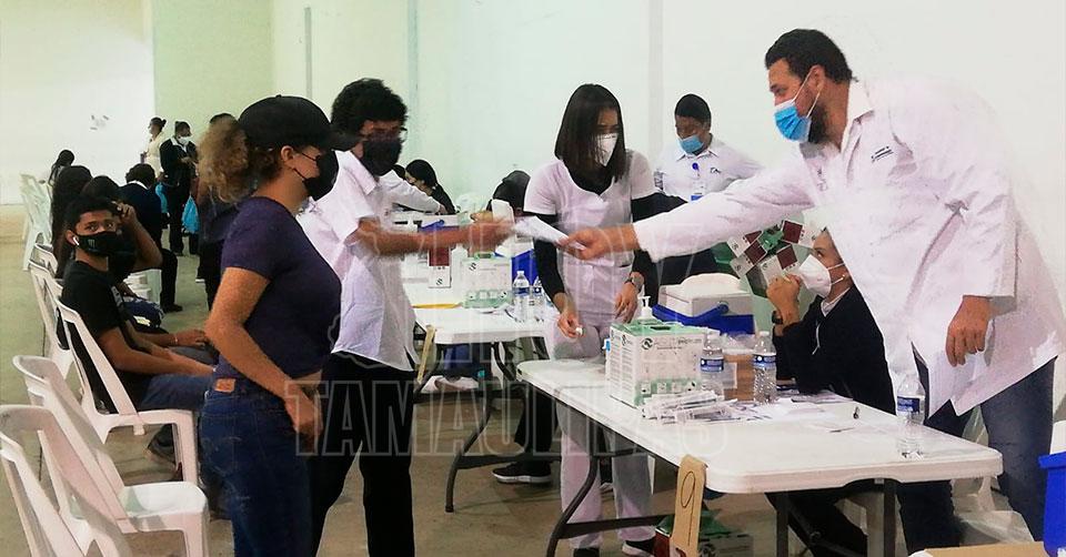 Matamoros, Tamaulipas. - Gran afluencia de jóvenes de 15 a 17 años y de sus padres se registró el primer día de aplicación de la primera dosis anti Covid de la marca Pfizer en los municipios fronterizos de Tamaulipas, en donde se inmunizará a cerca de 100 mil adolescentes, señaló el Delegado de los Programas Sociales para el Desarrollo en la entidad, Rodolfo González Valderrama.