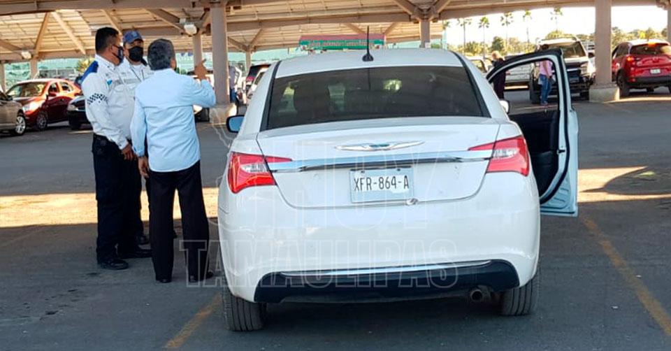Pero al masculino que conducía el coche de la marca Chrysler color blanco antes de entrar le pedían los documentos para poder validar su entrada, pero este se molestó con la observación que le hizo el servidor de la nación y le aventó el coche.