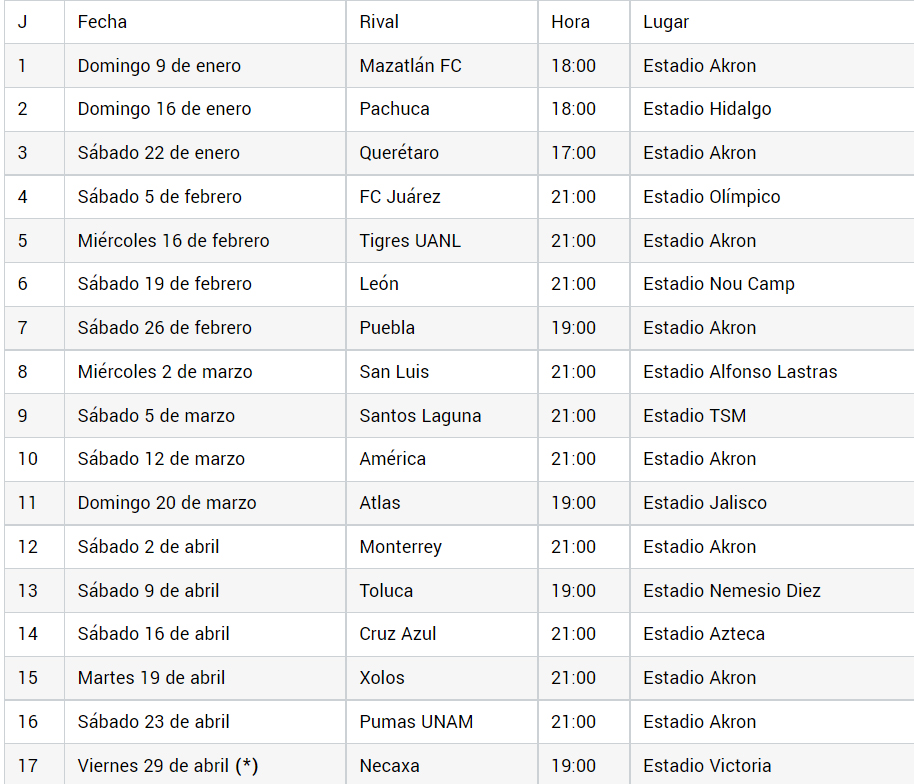 Este es el calendario de Chivas en el Clausura 2022: