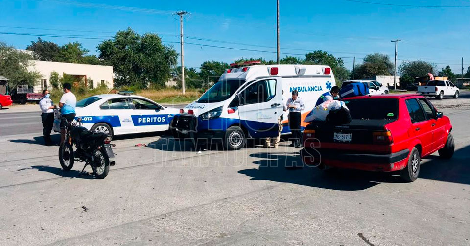 Ciudad Victoria, Tamaulipas. - Un joven de 20 años que se trasladaba a bordo de su motocicleta resultó lesionado, luego de que un coche lo chocara de frente al intentar entrar a una gasolinera en Ciudad Victoria.