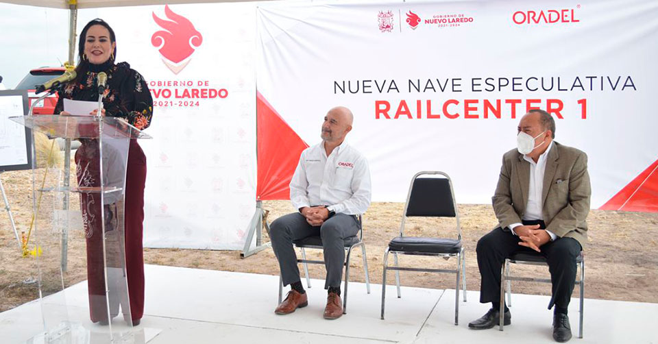 Nuevo Laredo, Tamaulipas. - La alcaldesa Carmen Lilia Canturosas Villarreal, dio el banderazo de salida para el arranque de construcción de la Nueva Nave Especulativa RailCenter 1 del Oradel Industrial Center, con una inversión de más de 8 millones de dólares.