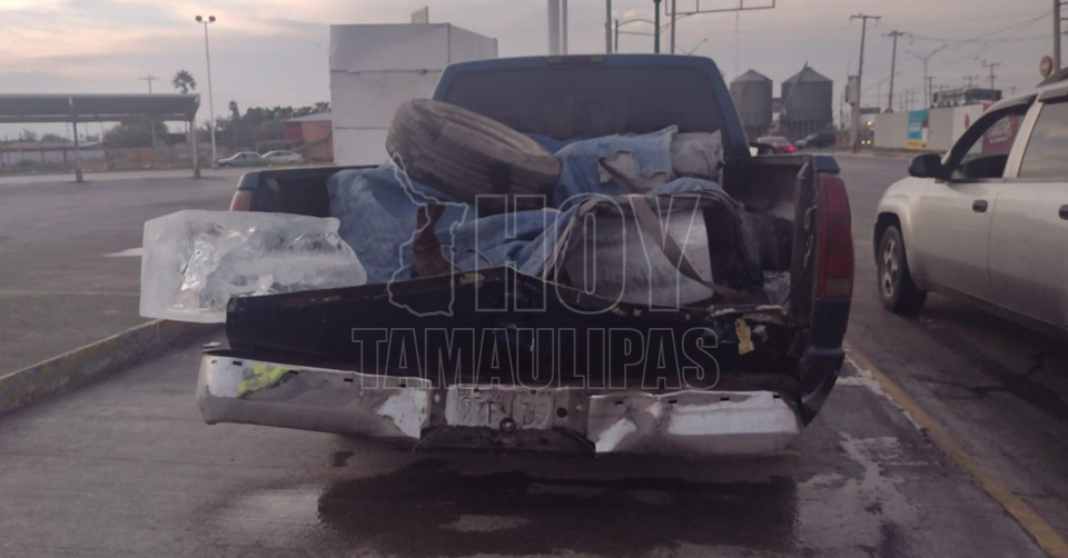 El muchacho fue prensado contra la parte trasera de la camioneta en la que llevaban el hielo para surtir, reportándose que tenía sus piernas lastimadas.