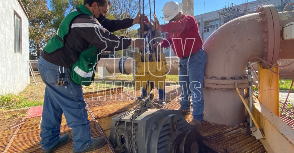 Nuevo Laredo, Tamaulipas. - Sin interrumpir la distribución de agua a la ciudad, la Comisión Municipal de Agua Potable y Alcantarillado (COMAPA), envió a mantenimiento preventivo a motor de bomba de captación #4, de planta Centro, para contar con equipos en óptimas condiciones para la temporada de altos consumos.