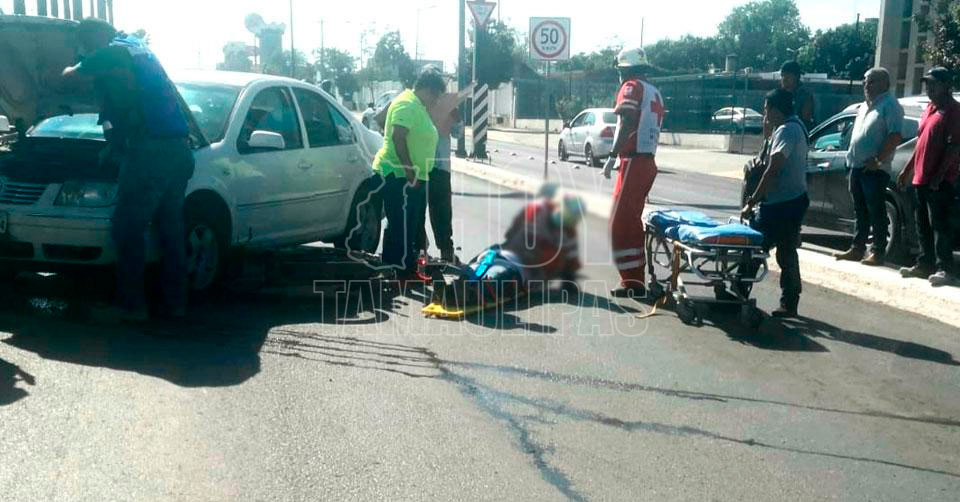 La mujer iba en un Jetta color blanco circulando de norte a sur sobre el Boulevard Tamaulipas y a la altura de la agencia Honda, según testigos, terminó impactando la moto y la aplastó.