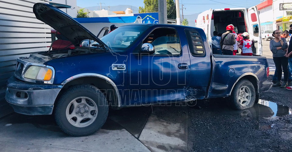 Ciudad Victoria, Tamaulipas. - Tres personas resultaron lesionadas y cuantiosos daños materiales fueron el saldo que dejó un percance vial en el centro de Ciudad Victoria.