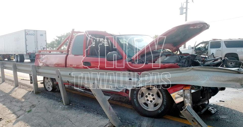 Altamira, Tamaulipas. - El conductor de una camioneta se salvó de milagro de morir atravesado tras impactarse en una barra metálica de contención en la carretera Tampico-Mante.