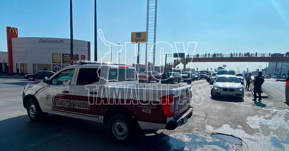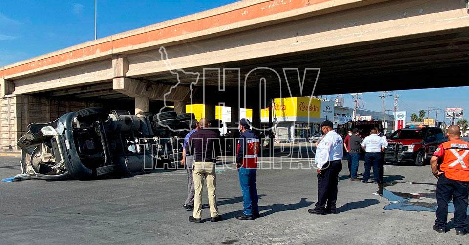 Matamoros, Tamaulipas. - Una pipa que trasladaba aceite no flamable terminó volcada este miércoles en la Avenida Pedro Cárdenas y el Periférico en Matamoros, presuntamente por una falla mecánica en la unidad.