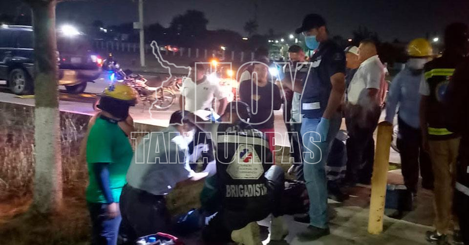 Altamira, Tamaulipas. - Dos jóvenes que se transportaban a bordo de una motocicleta derraparon en un tope en Altamira y al caer sufrieron diversas lesiones.
