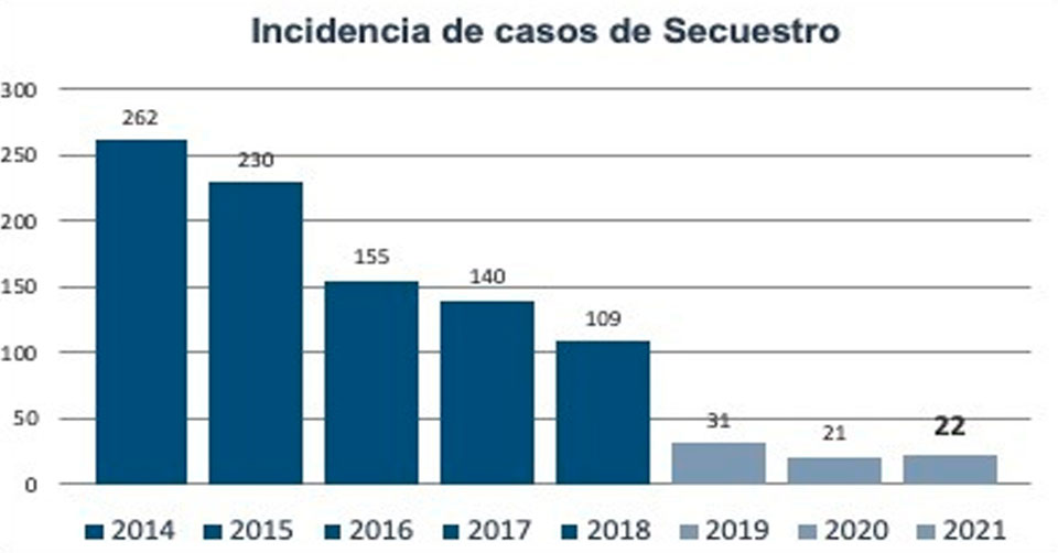 Sin embargo, las cifras han ido en disminución desde el 2016, cuando se registraron 155 casos de personas secuestradas, con disminuciones notables en el 2019 y 2020.