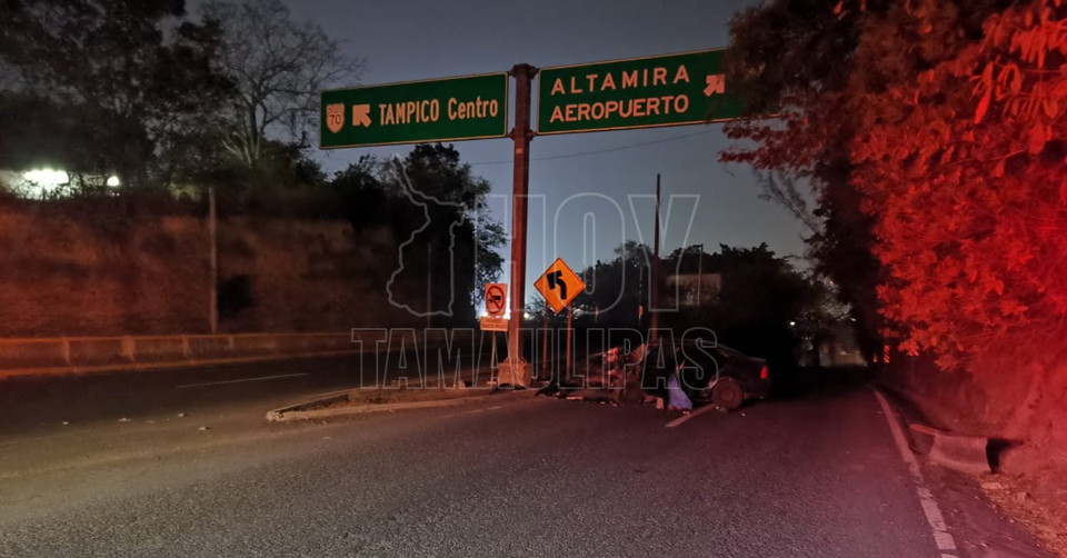 Tampico, Tamaulipas. - Un hombre adulto perdió la vida de forma instantánea al chocar fuertemente contra una base de un poste, justo en el ingreso al Puente Tampico.