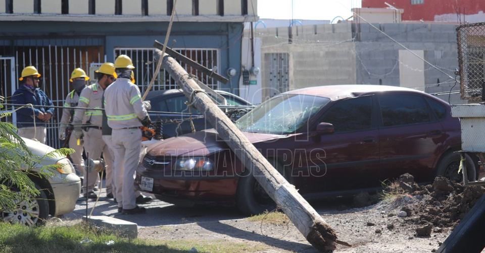 Los hechos fueron en el fraccionamiento Villa Las Flores, calle Gardenias Sur donde el poste de madera término sobre un auto Chevrolet, Impala de color guindo con placas de Texas.
