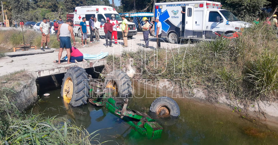 Mante, Tamaulipas. - Un hombre de 54 años de edad perdió la vida trágicamente este mediodía en El Mante, luego de caer a un canal de agua y ser aplastado por el tractor que operaba.