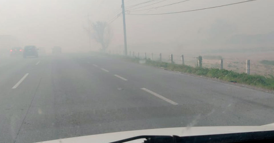 El incendio registrado este domingo avivado por el viento provocó grandes humaredas, dejando sin visibilidad un tramo del libramiento, por lo que los vehículos que circulan por dicho tramo tienen que hacerlo a vuelta de rueda.