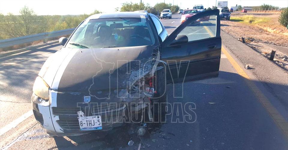 Nuevo Laredo, Tamaulipas.- Un adulto mayor resultó lesionado al estrellar su vehículo contra un automóvil, cuyo conductor circulaba de reversa y sin precaución por el Bulevar Colosio, en Nuevo Laredo.