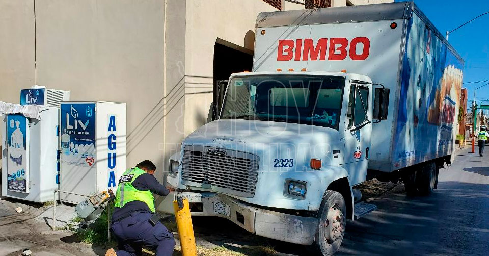 Un camión de Bimbo provocó una fuerte fuga de gas al chocar con un medidor, supuestamente porque el conductor se quedó sin frenos