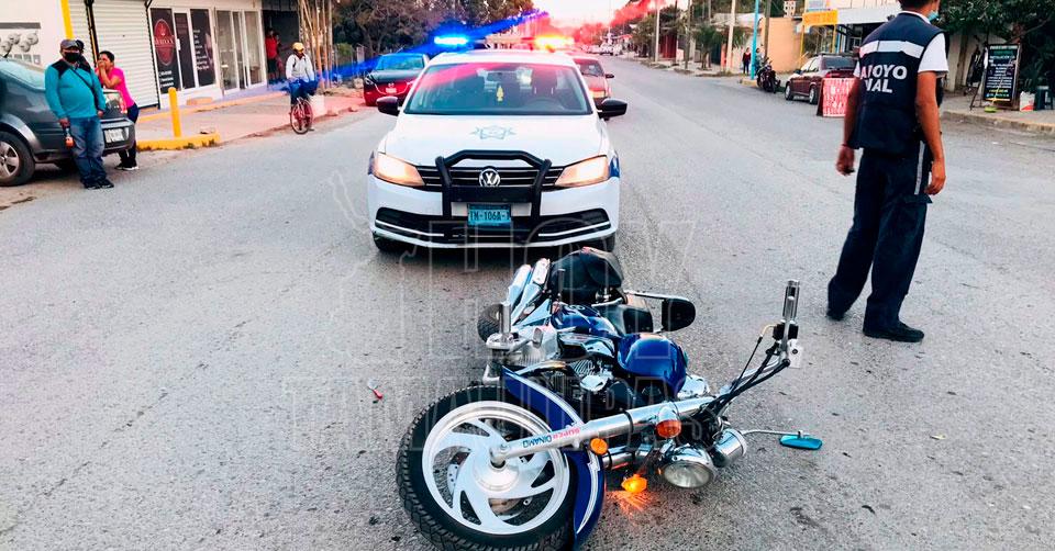 Motociclista derrapa tras intentar rebasar indebidamente en Ciudad Victoria