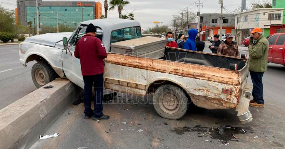 Nuevo Laredo, Tamaulipas. — Tras cambiar de carril sin precaución en su camioneta, un adulto mayor fue chocado por los choferes de dos vehículos, y del impacto, fue a parar al camellón que divide los carriles de la avenida Reforma, en Nuevo Laredo.