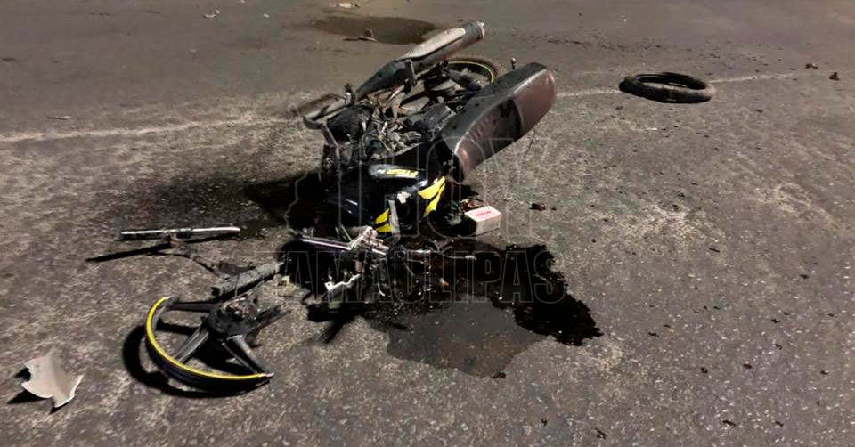 Nuevo Laredo, Tamaulipas. — Tras chocar su motocicleta contra el chofer de un vehículo que huyó, un hombre resultó herido de gravedad al salir “volando” por más de 30 metros y estrellarse brutalmente contra el suelo, al sur de Nuevo Laredo.