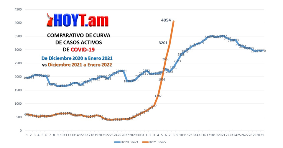 Es decir, en más del cien por ciento se han disparado los contagios y esto es debido a la presencia de variantes como la Ómicron que es sumamente más contagiosa.