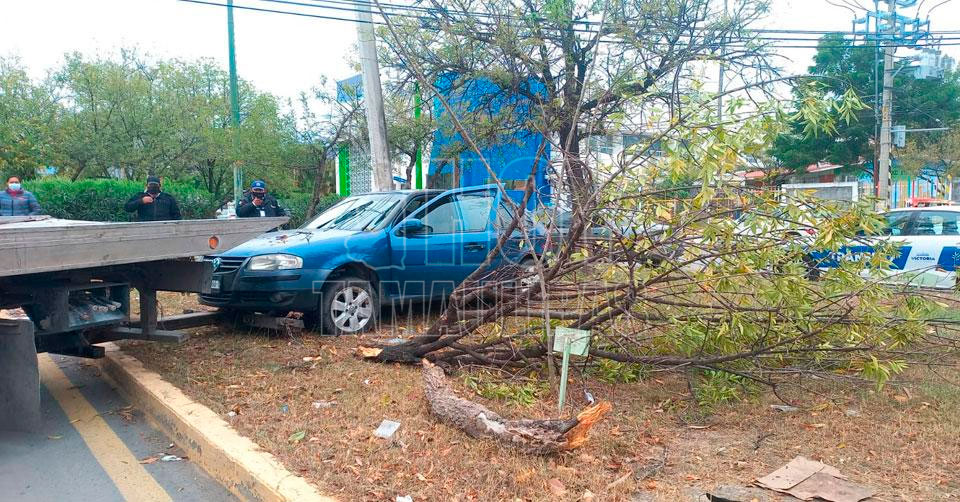 Ciudad Victoria, Tamaulipas. - Una mujer intentó dar una vuelta cerrada en una avenida de Ciudad Victoria, pero en la maniobra se proyectó contra un árbol.