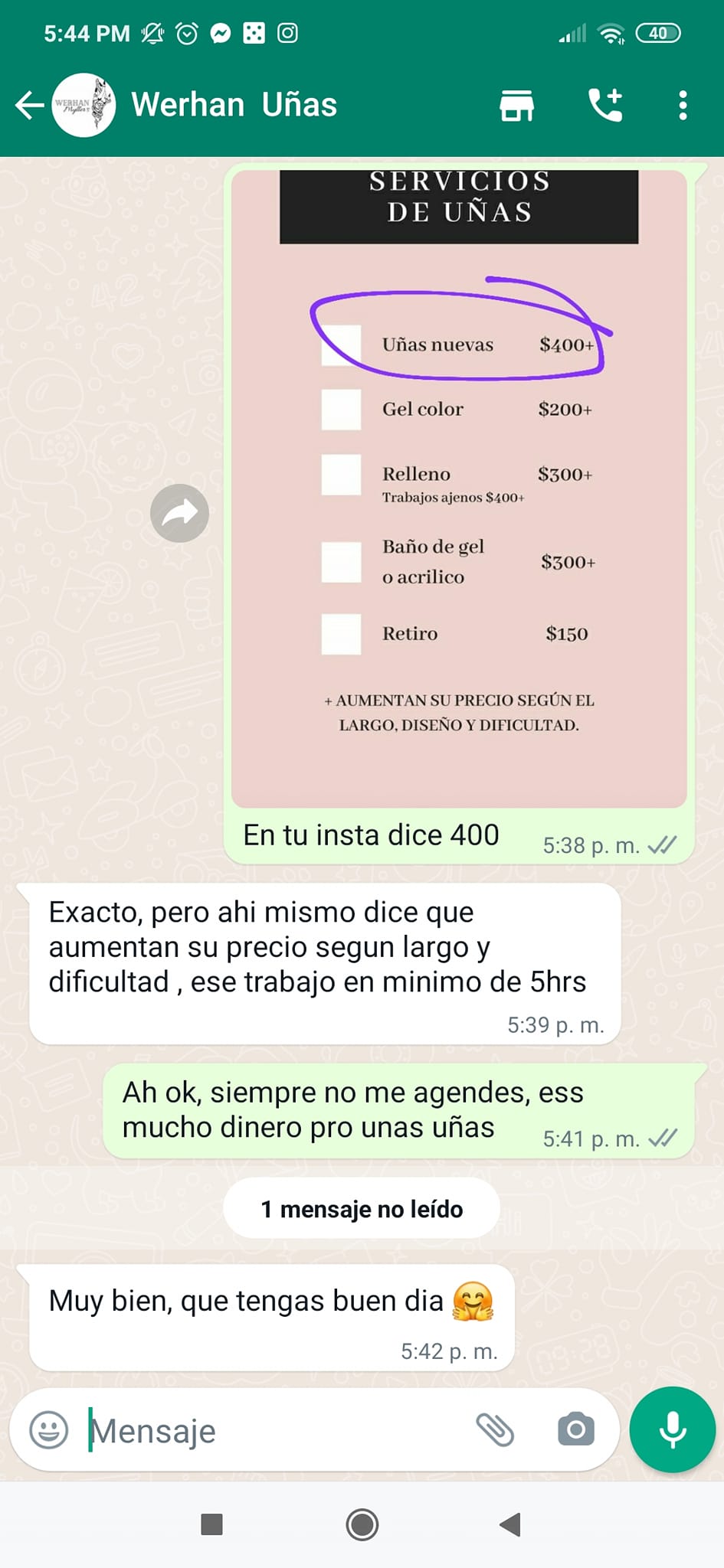 “Se supone que es para pasar un momento relajante y solo sales estresada, sus uñas son extremadamente caras y el lugar no lo vale”, continuó quejándose Fernanda Ortega.