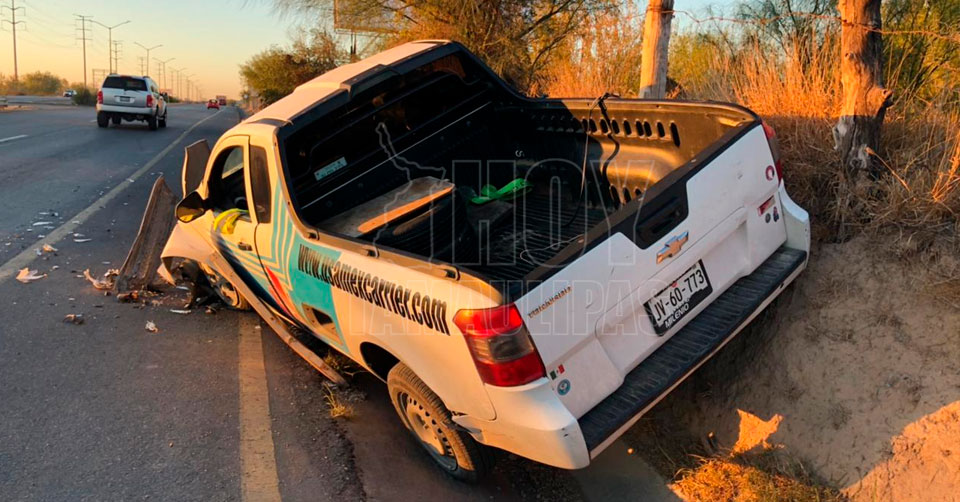Abandona camioneta tras chocar con barandal en Nuevo Laredo