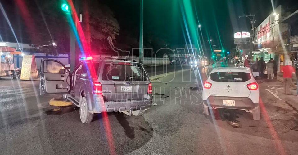 Altamira, Tamaulipas. - Un fuerte choque entre dos vehículos se registró en plena zona centro de Altamira, debido a que una de las unidades se pasó el alto indicado por el semáforo.