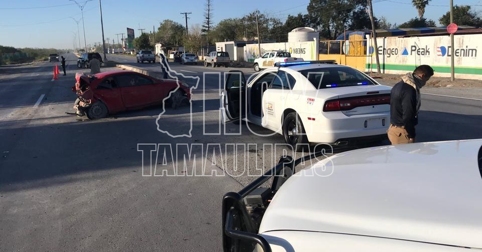 Matamoros, Tamaulipas. - Un aparatoso choque ocurrió la mañana de este lunes en la carretera de Matamoros a Ciudad Victoria, a la altura del Ejido La Luz, que dejó como saldo dos lesionados y cuantiosos daños materiales.