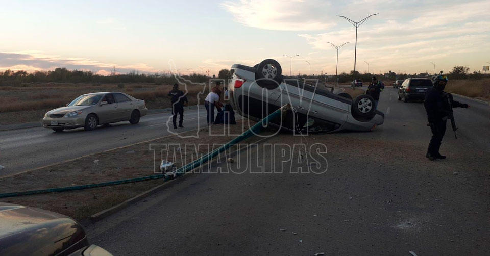 Nuevo Laredo, Tamaulipas. - Una jovencita salió lesionada luego de que la camioneta en que viajaba como acompañante volcó tras chocar contra un poste de alumbrado público, en el Bulevar Municipio Libre, al poniente de Nuevo Laredo