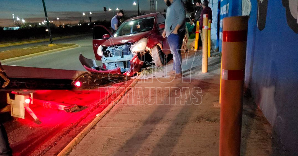 Se estrella contra tubo de contención y sale ileso en Nuevo Laredo