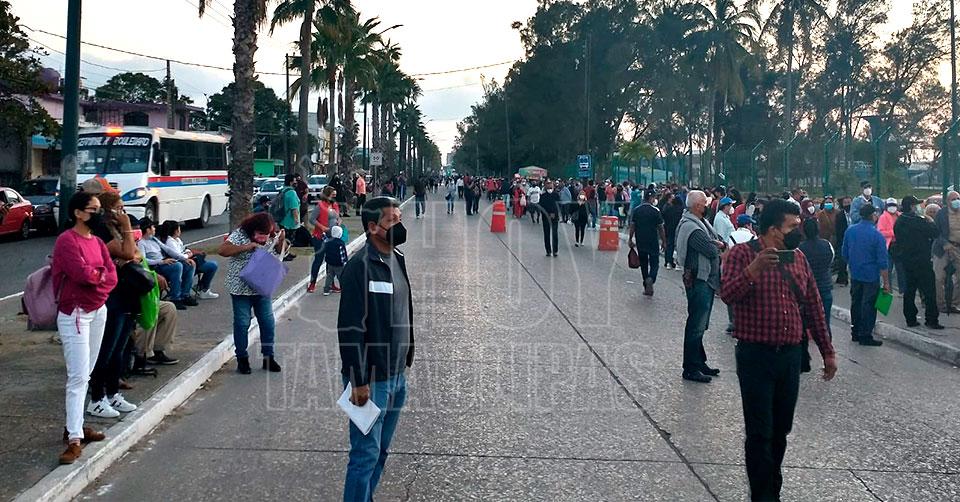 En la fila de espera fácilmente había poco más de 800 personas, quienes se formaron desde temprano, pero como se ha venido informando la cola se extendió hasta el Bulevar Fidel Velázquez, unos 300 metros más adelante de la Escuela Náutica Mercante de Tampico.