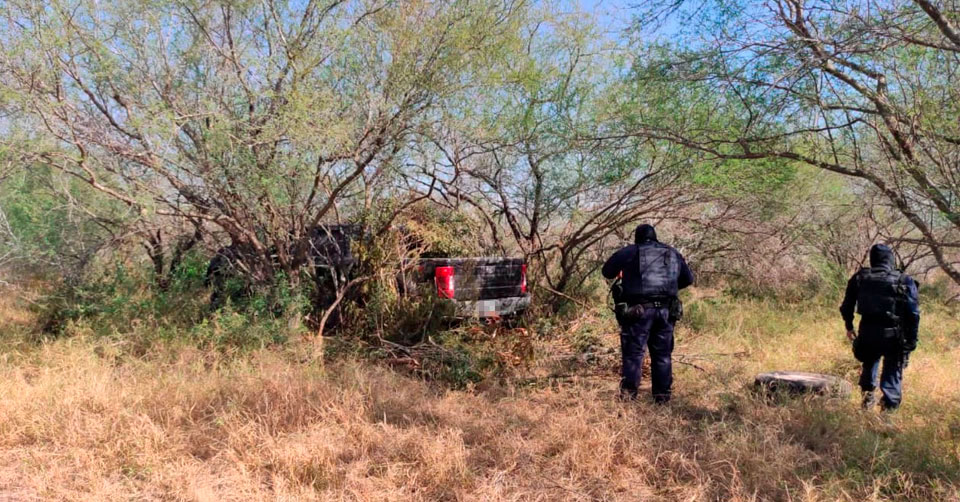 Tras asegurar el perímetro, los policías encontraron una camioneta Chevrolet Suburban color blanco modelo 2012 sin placas; metros más adelante había una Ford F-250 Super Duty modelo 2022 con placas de Tamaulipas, que al verificar en Plataforma México arrojó reporte de robo.