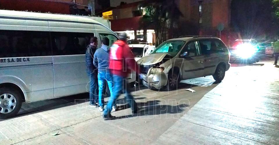 Tampico, Tamaulipas. - Dos personas lesionadas y daños de gran cuantía, es el saldo de un fuerte choque registrado la noche de ayer jueves entre tres vehículos en la zona norte de Tampico.