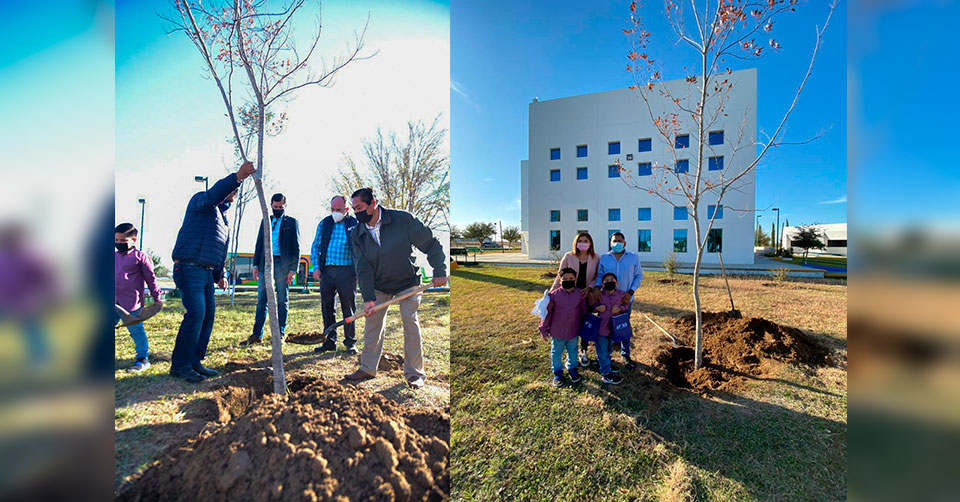 Nuevo Laredo, Tamaulipas.- Siguen ex alumnos de la Universidad Tecnológica de Nuevo Laredo (UTNL) plantando árboles en esta institución, como parte el programa denominado “En la UT dejamos huella”, y el cual también tiene el objetivo de reforestar dicho plantel educativo, que tras la tromba de mayo del año pasado perdió muchos árboles.