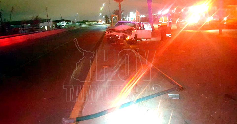 Nuevo Laredo, Tamaulipas.- Un hombre y una mujer resultaron lesionados al estrellar el vehículo en que viajaban contra un arbotante, instalado en el camellón que divide los carriles de la Carretera Nacional, al sur de Nuevo Laredo.