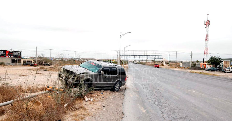 Nuevo Laredo, Tamaulipas.- Por tomar como “pista de carreras” el Segundo Anillo Periférico, una persona estrelló su camioneta contra un arbotante y un tubo de contención, mismos que derribó para posteriormente dejar abandonada la unidad.
