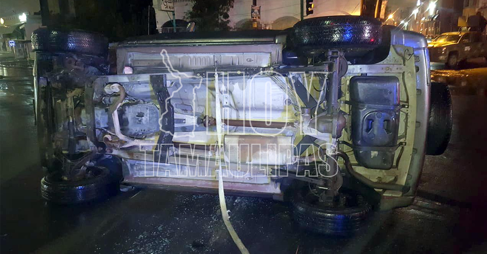 Nuevo Laredo, Tamaulipas. - Ileso de milagro resultó un conductor después de que volcó en su camioneta tras chocar contra la base de un semáforo en la avenida Reforma, en Nuevo Laredo, por viajar sin precaución.