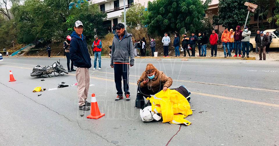 El trágico percance ocurrió cuando el joven empleado se desplazaba a bordo de una motocicleta y al intentar salir de la colonia Horacio Terán para incorporarse a los carriles del Bulevar Fidel Velázquez fue arrollado por una camioneta; el golpe lo hizo volar para finalmente hacer en el área de rodamiento, mientras que un Malibu chocaba con la moto que salió derrapando sin control.