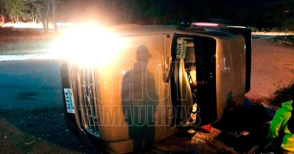 Ciudad Victoria, Tamaulipas. - El conductor de una camioneta resultó lesionado al volcar la unidad que manejaba luego de chocar en la parte trasera de otro automóvil en Ciudad Victoria.