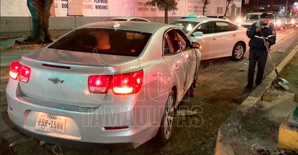 Nuevo Laredo, Tamaulipas.- Al burlar la luz roja de un semáforo, un conductor provocó un accidente en la avenida César López de Lara, en Nuevo Laredo, en el que tres vehículos resultaron con daños materiales cuantiosos.