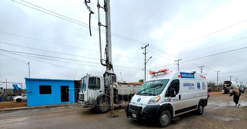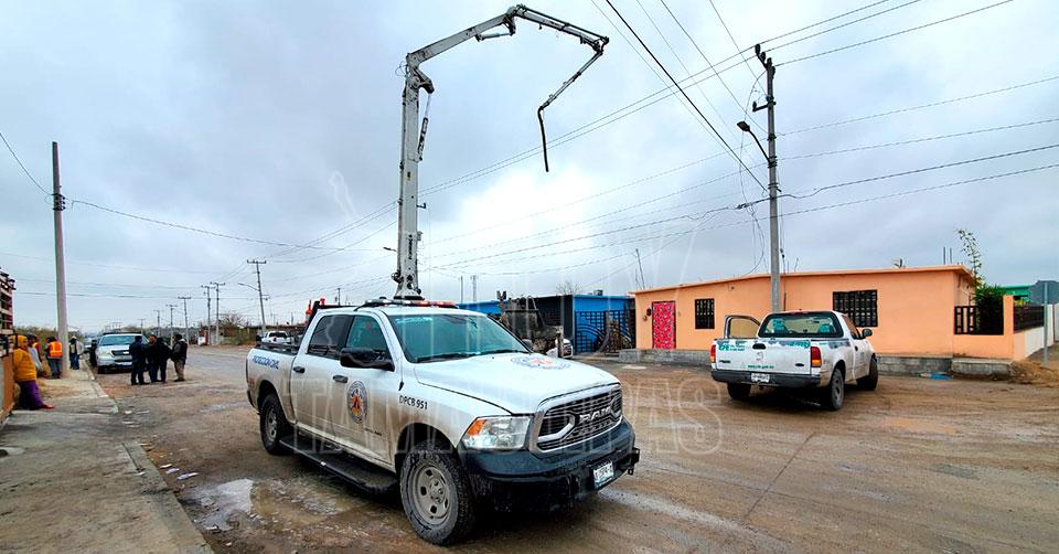 Nuevo Laredo, Tamaulipas.- Un hombre que manejaba una grúa para vaciar cemento en una vivienda de la colonia 150 Aniversario, en Nuevo Laredo, sufrió una descarga eléctrica, luego de que la máquina hiciera contacto con el cableado de media tensión de los postes.