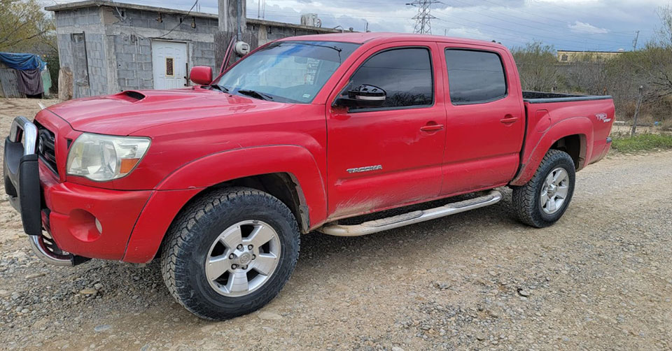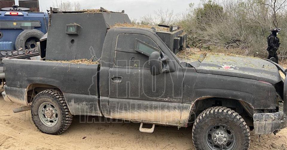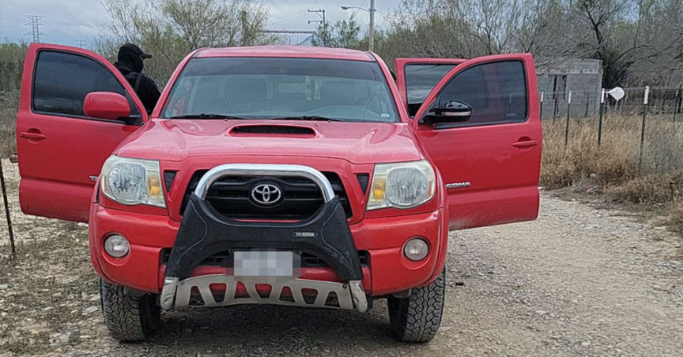 En el lugar encontraron una Toyota Tacoma roja modelo 2008 con placas de circulación de Nuevo León, que al verificar en Plataforma México arrojó reporte de robo con fecha 23 de noviembre de 2021, además una Dodge RAM negra con blindaje artesanal de las conocidas como “monstruos”.