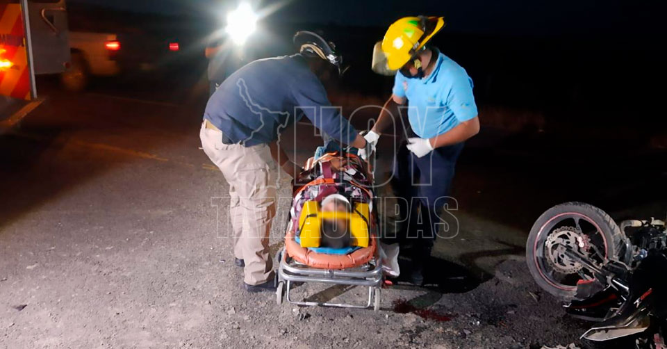 El Mante, Tamaulipas. – Un joven de 16 años y su tío de 43, resultaron lesionados luego de estrellarse en la moto en la que iban contra una camioneta en el kilómetro 147+700 de la carretera Tampico-Mante, a la altura del Cuartel Militar.