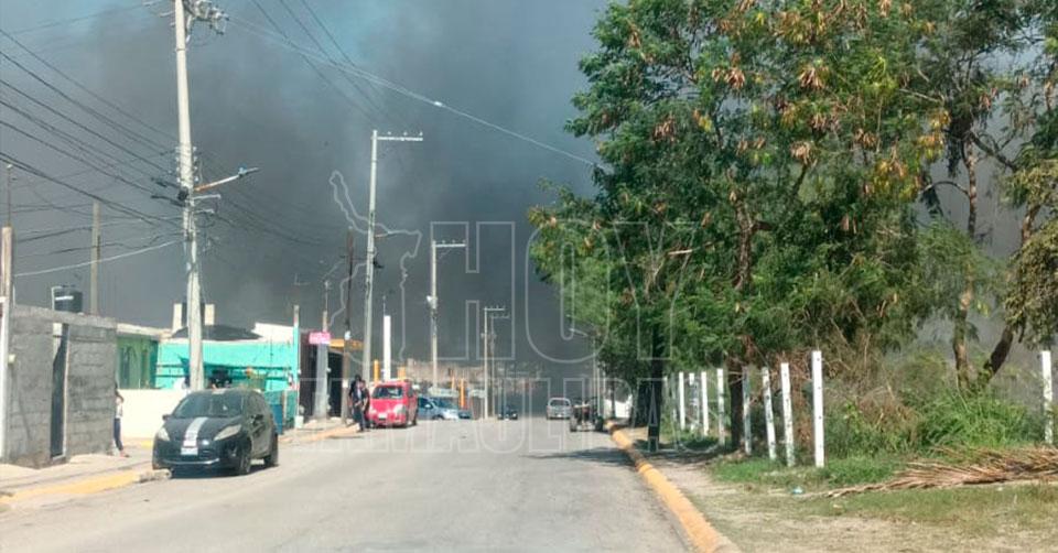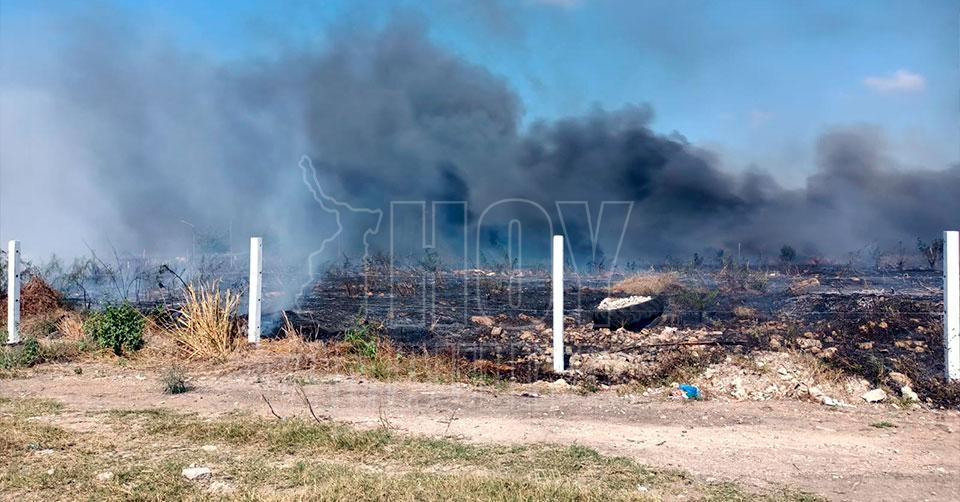Altamira, Tamaulipas.- Un terreno abandonado en las cercanías de una tienda de autoservicio y una estación de gas LP en la zona centro de Altamira se incendió esta tarde.
