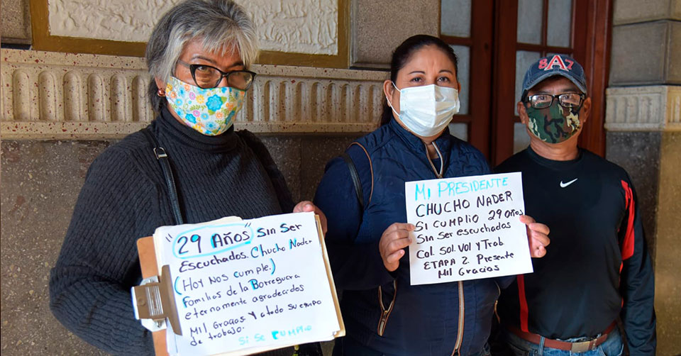 "Agradecemos al señor Presidente por la gestión y el apoyo que está haciendo para que podamos adquirir las escrituras 140 familias de la colonia Borreguera que durante 29 años hemos vivido en la incertidumbre. Durante muchos años hemos estado solicitando este trámite y hoy el Alcalde Chucho Nader nos apoyan para seguir adelante con el proceso de escrituración que nos dará mayor seguridad, tranquilidad y sobre todo la certeza patrimonial de nuestras viviendas", dijeron.